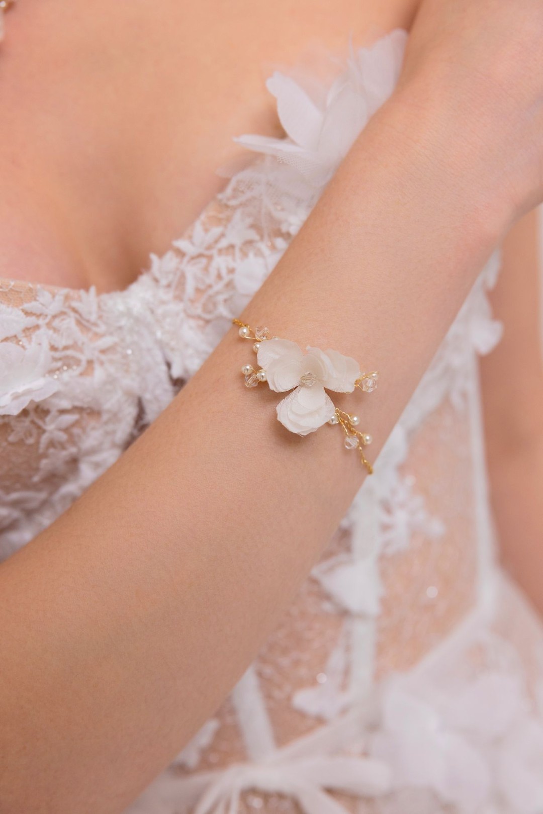 Do bransoletki możesz dobrać wiele modeli kolczyków, naszyjników, czy ozdób do włosów z kolekcji “Serenity Bloom & Shine” oraz “Silk Petals & Pearls”.