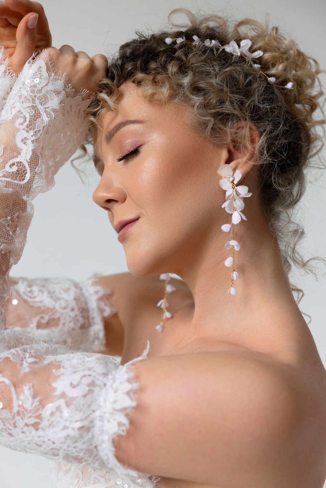 Długie kolczyki ślubne z kwiatami “Petalia”