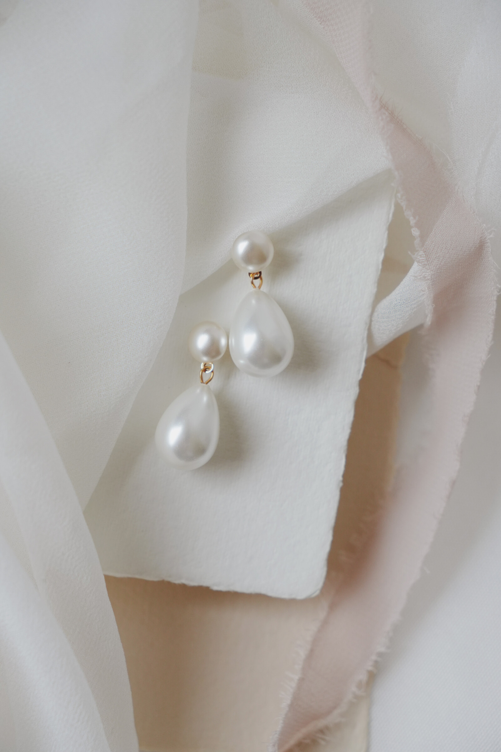 Kolczyki z perłami to doskonały wybór dla panien młodych, które szukają eleganckiej biżuterii w ponadczasowym stylu. Połączenie małej perły przy uchu z większą, delikatnie opadającą kroplą tworzy subtelny, bardzo kobiecy efekt.