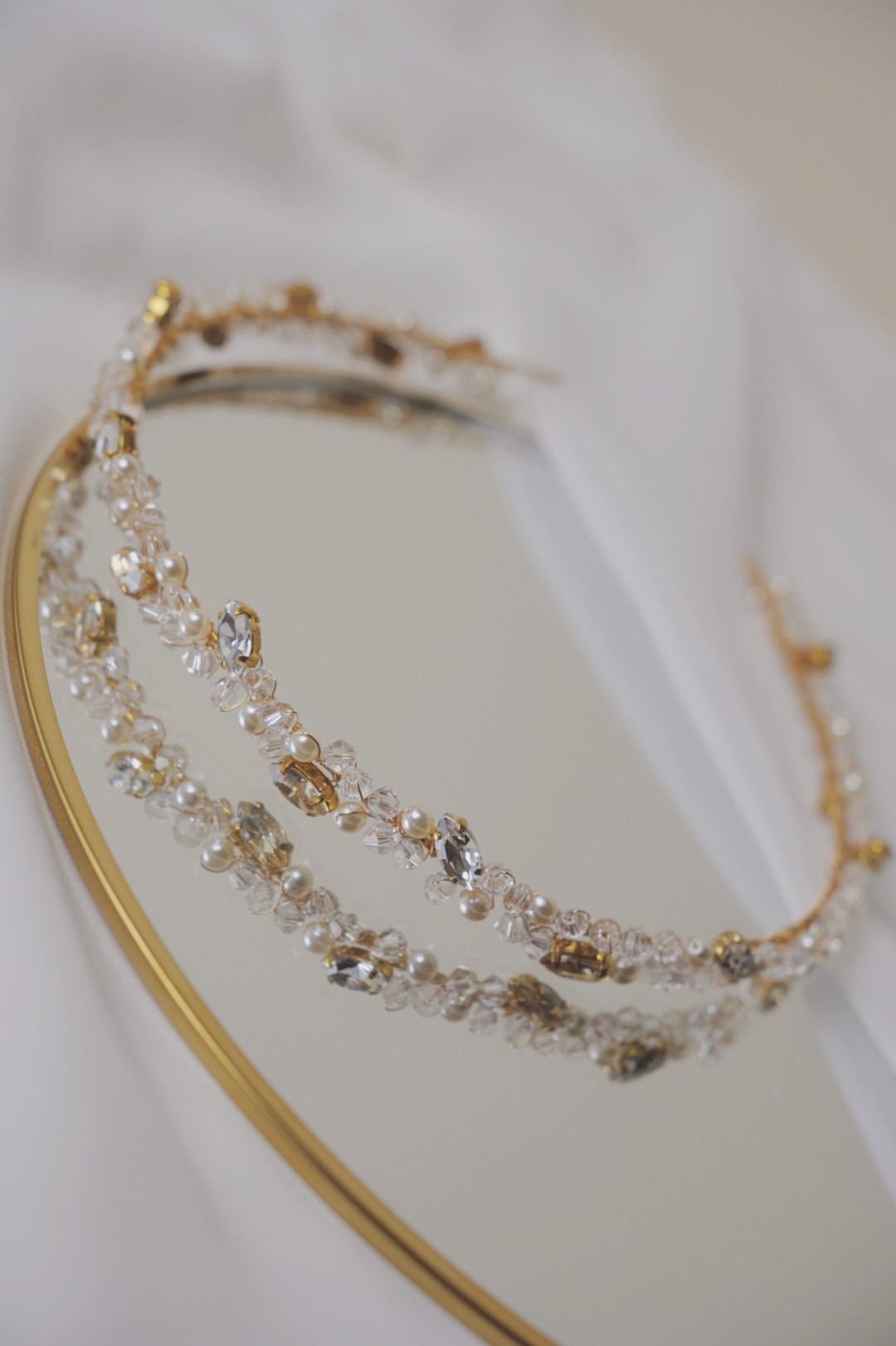 Opaska ślubna z kryształkami i perłami “Clarisse Glow”